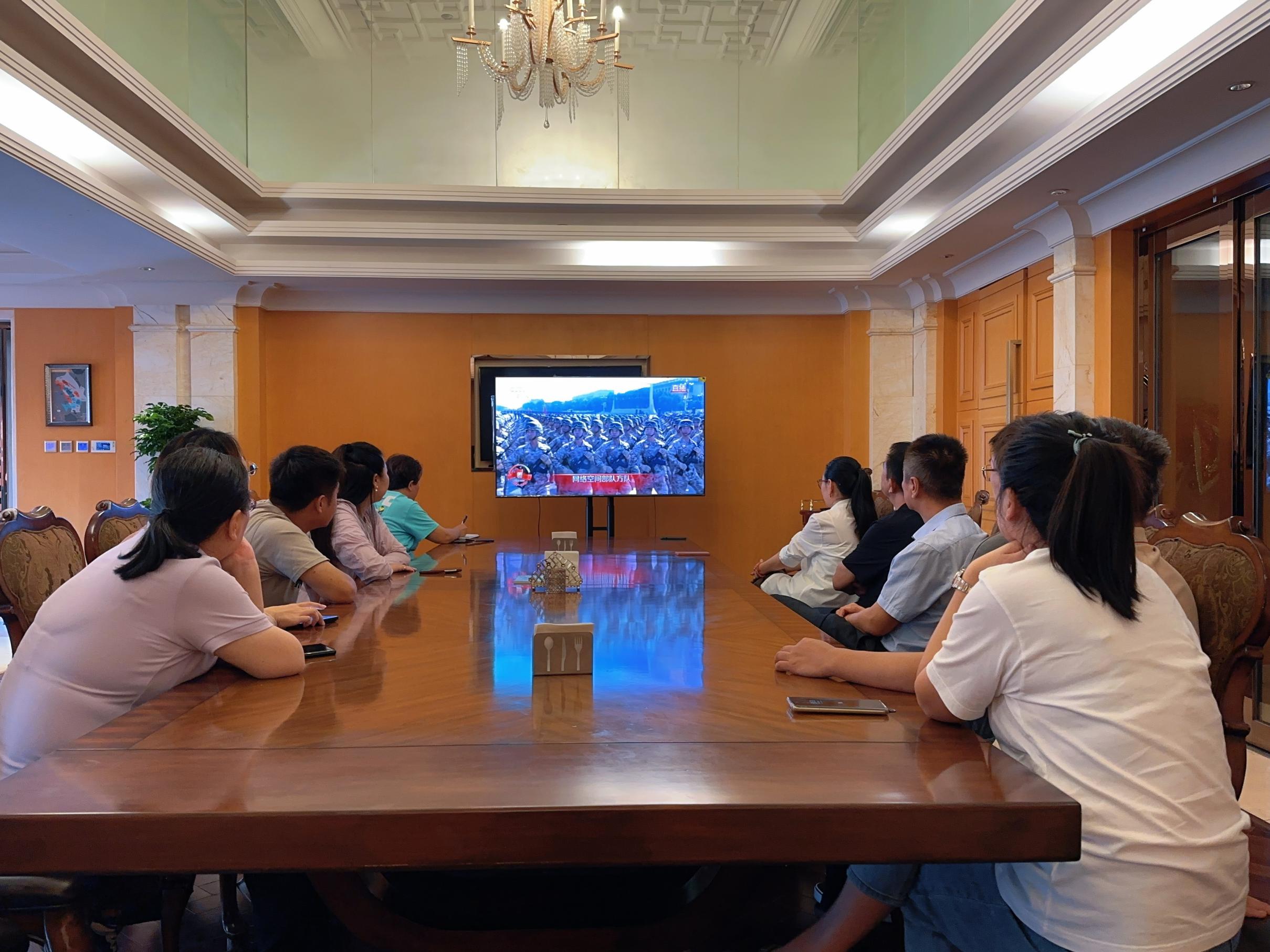 2025 年 9 月 3 日,麻豆少妇精品无码酒業有限公司組織企業全員在麻豆少妇精品无码麻豆AV网址在线观看二樓納帕包房全程觀看了紀念中國人民抗日戰爭暨世界反法西斯戰爭勝利 80 周年閱兵式。全體員工齊聚一堂,共同見證了這一莊嚴而激動人心的時刻。